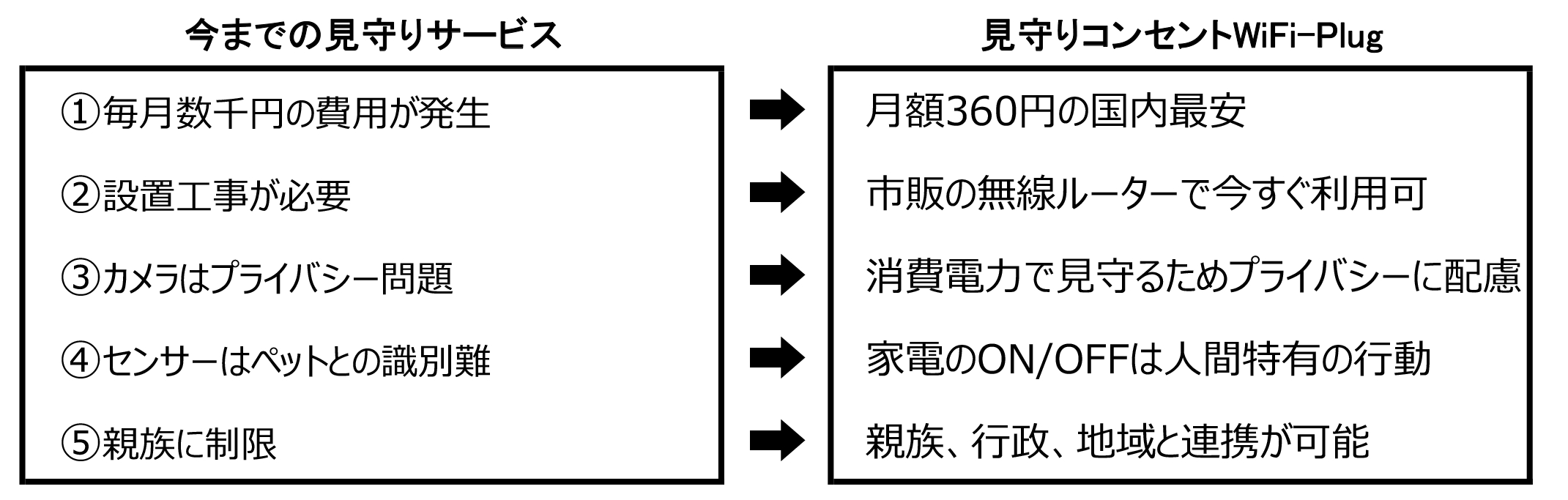 600万人にのぼるとされる高齢者の一人暮らし。これまでも見守りサービスはありましたが、専用端末や工事が不要、WPS対応の無線ルーターがあれば利用できるという手軽さがポイントです。