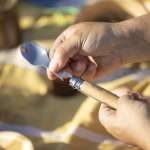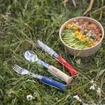 オピネルのナイフは、異なる10サイズをラインナップ。それぞれナンバーが振られていますが、「Picnic+」はその中の「No.08」に組み合わせられるアイテム。ナイフをたたんだ状態のハンドル部分に取り付けられる、ステンレススチール製のフォークとスプーンのオプションパーツです。