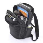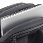 柔らかなパイル生地を使用した背胴側気室のノートPC収納ポケットは、14.0~15.6インチのノートPCが収納可能で、PC周辺機器を収納できる吊りポケットも付属。