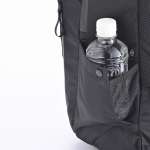 ホックボタンを外すとマチが拡がるサイドポケットは、ビジネスシーンでは濡れた折りたたみ傘、アウトドアシーンでは飲料水を収納するのに便利。フロントポケットは小物を整理して入れられて、背面には片掛けで取り出しやすいセキュリティポケットが配されています。