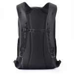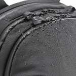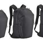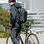 カラーはブラックのみで、サイズは17、20、25Lの3種類。レインウエアに匹敵する本体の生地には、耐水圧10,000mm以上の耐水性に優れたレイヤー生地を、ファスナーには水が侵入しにくいコーティングファスナーを採用。突然の激しい雨でも、重要な書類やガシェットをしっかりガードします。
