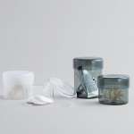 中に入れたものが美しく見える透明度が高い“クリア”に加えて新たに、和紙を透かしたように中に入れたものをぼんやりと映し出す“フロスト”、周りの雰囲気を引き締める“スモーク”が仲間入り。中に入れる物や使うシーンに合わせて使い分けてみたくなりますね。