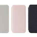 手帳型ケースの「Slimflip」(3590円)は、パステル調の3色で展開。