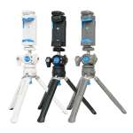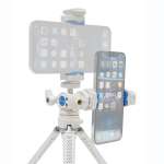 そして三脚の自由雲台は、三脚穴が90度の角度で2カ所に付いていて、簡単にスマホの縦位置・横位置の変更ができるようになっています。これなら撮影だけでなく、ビデオ通話やオンライン会議、動画撮影時のスマホスタンド代わりとしても使用できますね。
