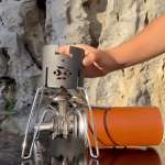 本体素材には、あえて無骨なアイアンを使用。ゆえに重さも310gと、この手のアイテムとしてはやや重さがありますが、そこは安定感と耐熱性との相殺ということでご容赦を。Makuakeではアルコールストーブや燃料の携帯に便利なスキットルとのセットコースも用意されています。