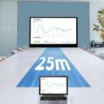 2つのユニットはどちらも内部に高性能アンテナを搭載するので、投影したいデバイスとの間に遮蔽物さえなければ最大なんと25mもの距離での投影もOK! 映像のみならず音声データも伝送できるので、広い会議室や講義室、アウトドアなどでも活用できそうです。