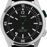 アプライドインデックスには蓄光素材。秒針と2時位置のリューズにはささやかなアクセントとなるグリーンの配色。ブラックのレザーベルトが全体を引き締め幅広いコーディネートにマッチする一本に仕上がっています。10月5日より発売開始の数量限定モデルで、TIMEX日本公式サイトのみでの取り扱いです。