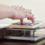 今回の電卓を開発するにあたり、まず最も大きなニーズである「右手3~5本指を使うときに打ちやすい電卓」をコンセプトに設定。国立研究開発法人産業技術総合研究所とともに、電卓を操作する際の人の手や指の動き、姿勢、キーの押し込み方向、筋活動量などを分析し、ある特性を発見しました。それは電卓を操作した際には手がやや外側に傾く一方で、キーの打鍵は垂直方向になるということ。