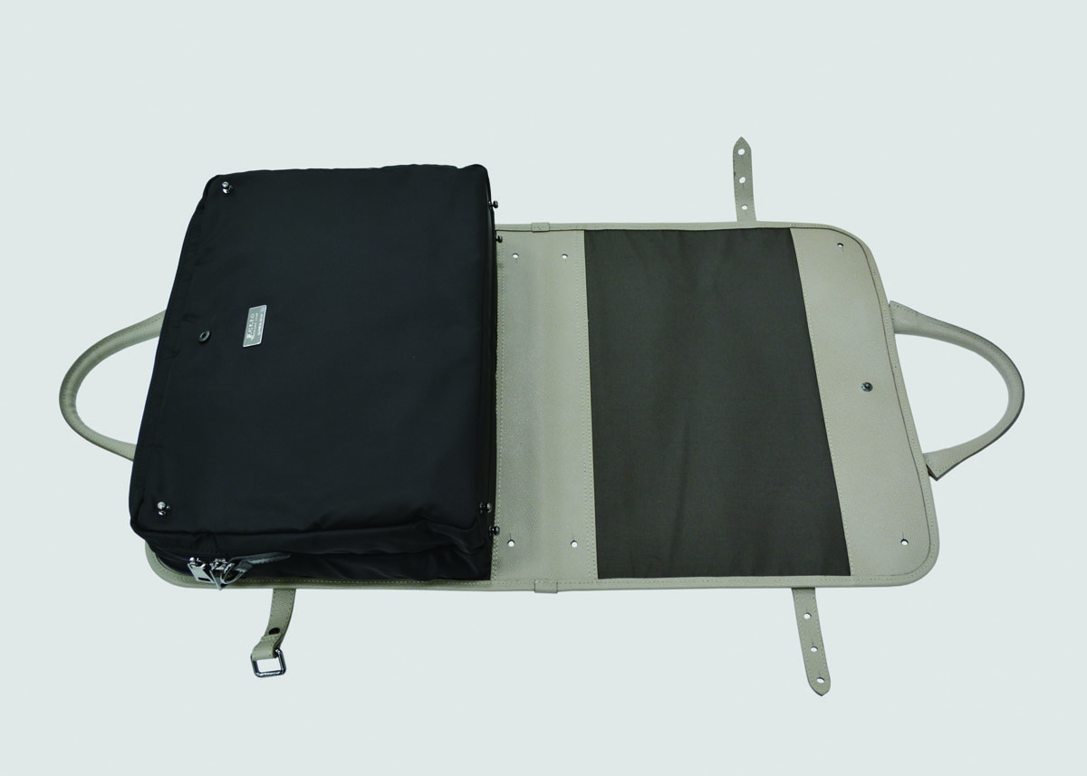 組み立てができるということは、バラして持ち運ぶことも可能。余計なスペースをとることなく、もうひとつのバッグをラゲージに収納して持ち運べます。