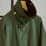 また、肩回りから袖回りのサイズをひと回り大きく修正し、ややオーバーサイズなシルエットに。さらに、襟を立ててスタンドカラーコートとしても着用できるよう、襟先にかけて襟幅も短くされています。