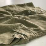 そんな同社が、最高のカーゴパンツをつくるべく素材を探し求めていたところ出合ったのが、岡山県井原市の吉和織物によるセルビッチグリーンデニム。厳選したナチュラルムラ糸を旧式のシャトル織機で織り上げた貴重なこのミリタリーグリーンの生地は、肌ざわりが良く、凹凸感のある武骨な雰囲気が魅力です。