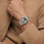 このほかカウンターウェイトに添えたブランドシンボルのΦマーク、中身をくりぬいてアウトラインで表現した時分針、シースルーバックから覗くムーブメントの華麗な装飾など、小技の効いたディティールひとつひとつがチャーミング。思わず語りたくなる魅力が満載です。