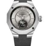 また元来伝統的でクラシカルな機構であるはずのムーンフェイズですが、このモデルではリビエラそのものがもつスポーティなスタイリングに合わせて、装飾性を排したモダンなものへと表現をデフォルメ。モノトーンの色調とともに、シャープで現代的なアクセントとして存在感を放っています。