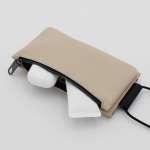 スマホポケットとは別に、ファスナーの付いた小物ポケットも装備。こちらのポケットには、イヤホンやリップ、ウェットティッシュ、鍵や紛失防止タグ、そして現金やカードケースなど、スマホにプラスして普段持ち歩きたい小物類を入れておけるので、スマホのみを収納できるスマホショルダーだけでは心許ないシーンでも活躍。