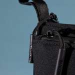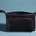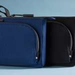 サイズは約H12×W20×D5cm。メイン素材に採用している300デニールリサイクルポリエステルのツイル(綾織り)生地は上品な光沢感があり、しなやかな手触りが特徴。環境に配慮したこのリサイクル生地には耐久撥水加工を施し、2つのポケットにはポリウレタンコーティングを施した水や液体に強い止水ファスナーを採用しています。