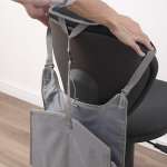 取り付け方は、バックルを止めたらチェアの背もたれに掛け、ベルトを引っ張り高さを調節した後に、左右の面ファスナー式ベルトを止めるだけ。バッグの出し入れをする際は、左右のベルトを着脱すればOKです。