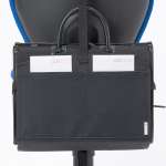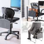 椅子の背もたれに、リュックのように引っかけるだけで簡単にバック置き場を増設できる便利なアイテム。耐荷重は約5kgで、サイズはW38.5×D13×H26.5cm、重さは460g。オフィスのチェアに常設しておくのはもちろん、仕事で訪ねた訪問先やスペースが限られたセミナー会場でもサッと取り出してすぐに使えます。