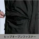 つなぎの欠点といえば、脱いだり着たりする面倒さ。特に冬場は寒さからトイレに行く頻度が多くなりがちですが、「GE-590」はお尻の部分をファスナーで開けられるヒップオープンファスナー付きなので、トイレへ行く度に脱いだり着たりしなくてOK。