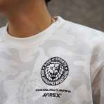 ドライタッチな素材感のスウェットは、長期間を着用できるモデルを採用。カモフラージュ柄のデザインには新日本プロレスのエンブレムを施し、バックにはAVIREXのロゴに加え、MA-1同様に覆面レスラーのトムキャットを組み合わせています。
