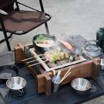 火が落ち着いたら暖をとったり、ぼんやり眺めるのも良いですが、料理が楽しめるのも囲炉裏の醍醐味! 焼き網や串焼きスタンド、竹串(100本)が付属しているほか、別売の「CHIRORI専用五徳」(4300円)を使えばスキレットや鍋を使うことも可能。囲炉裏ひとつで、バーベキュー、焼き鳥、鍋など様々な料理を楽しめます。