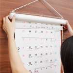 また、巻物のようにカレンダーの上部や下部を巻き上げたり伸ばしたりすることで、表示期間を約1ヶ月から6ヵ月まで調整可能(縦幅のサイズは約60~180cm)。表示期間を変更するとき以外はストッパーのおかげで表示期間が勝手に変わることもありません。