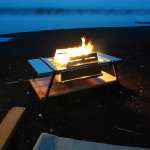 一見「テーブル上段がステンレスになっただけ?」と思いきや、天板中央を取り外すとなんと吊り下げ式の焚き火ラックに早変わり! 取り付けられるのは、驚きのポップアップ仕様で話題を呼んだ鎌倉天幕「SOLOIST HOMURA」 をはじめとするコンパクトタイプの焚火台やBBQコンロ。特にソロキャンプ用アイテムはコンパクトなサイズゆえ高さがなく、使う人の体格やキャンプスタイルによっては使いにくさを感じることもありますが、このテーブルがあれば炎の位置を好みの高さに調整することができるようになります。