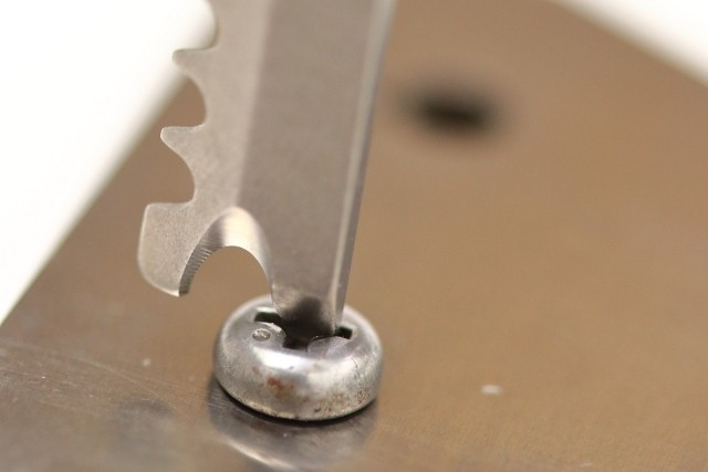 先端についた糸切りで、普通のハサミでは切ることが困難な釣り糸「PE」や世界最強の繊維「ザイロン」の切断が可能。服のタグについているT字のナイロンピンを切るなど、もっとも使用頻度が高そうな機能だ。
