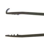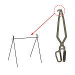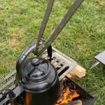 薪を掴む先端部分の先にはひとつで三役をこなすフック形状で、熱く鍋のフタやヤカンなどを引っ掛けて移動する際のリフターとして活躍。焚き火では火かき棒として薪をならしたり、転がしたすることができます。
