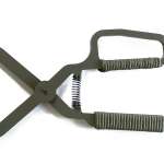 バネの力で開閉するので薪が掴みやすく、素材は丈夫で耐久性の高いスチール製。カラーリングはキャンプユーザーに人気のディープオリーブで、グリップにはすぐに使えるようにパラコードが巻かれています。