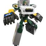 2体が”特装合体”すれば、変形ロボ「ジョブレイバー」に! 武器の“グローブ(軍手)”に貼れる“冷凍“、“冷蔵”、“精密機器につき取り扱い注意!”の荷扱いシールも付いてきます。