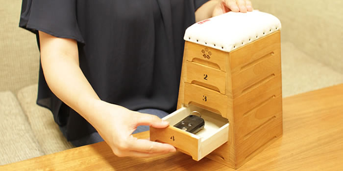 「とび箱小物入れ(引き出しタイプ5段)」(7500円)はそれより少し大きめのW140×D160×H235mmというサイズで、色はまるで本物みたいな「キナリ」。取り外せる5つの引き出しでさらに整理整頓に適したタイプなので、小物があふれがちな玄関まわりに置くのもいいかも!