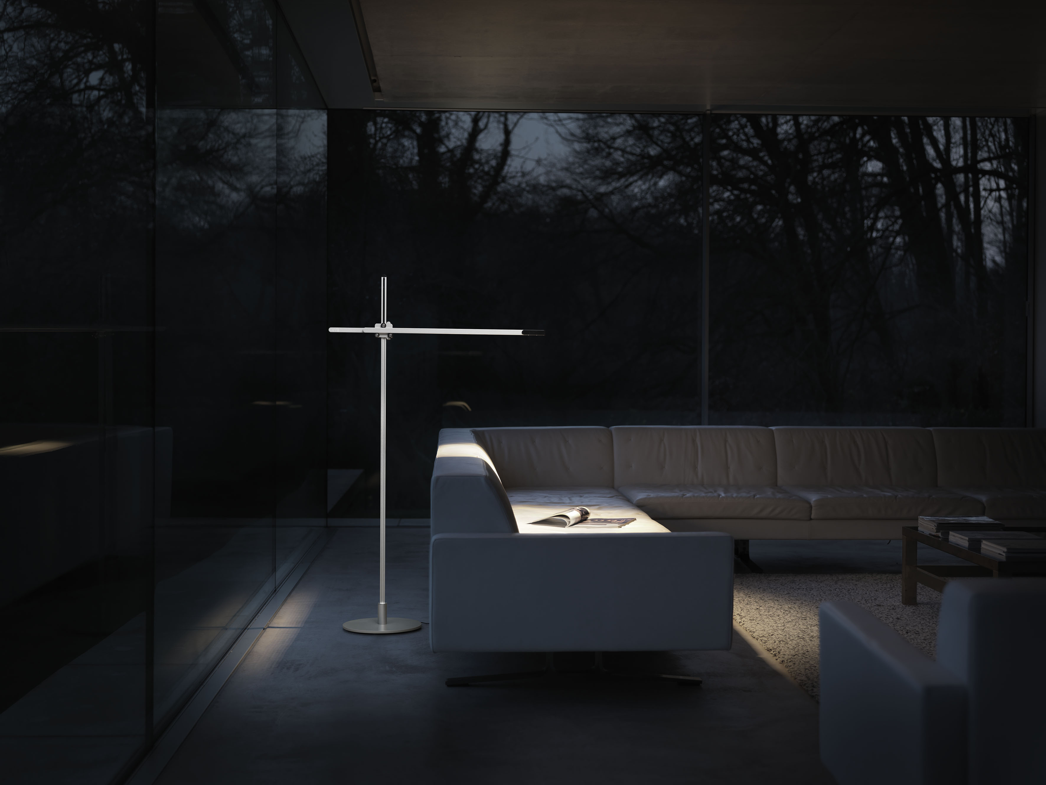 縦と横方向に延びたレール上を動くアームは、あらゆる高さや角度を自由自在に調整できるのだが、このアームの動きが滑らかそのもの。指一本でスーッ、ピタッ! これが感動するほど気持ちいい! オンオフも明るさ調節もタッチスイッチひとつで簡単。オンにしたときに前回オフ時の明るさで照射してくれるのもいい。