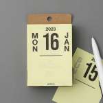×D3.0×H10.0cm。パッと目に留まるイエローの用紙に西暦、月、日、曜日のみをプリントしたシンプルなデザインが特徴。下半分はフリースペースとなっているので、その日のToDoや予定、日記などを自由に書き込めます。