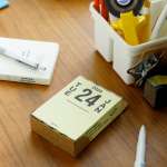 壁掛けやデスク上に置いて楽しめる「メモブロックカレンダー」のサイズは、W7.4