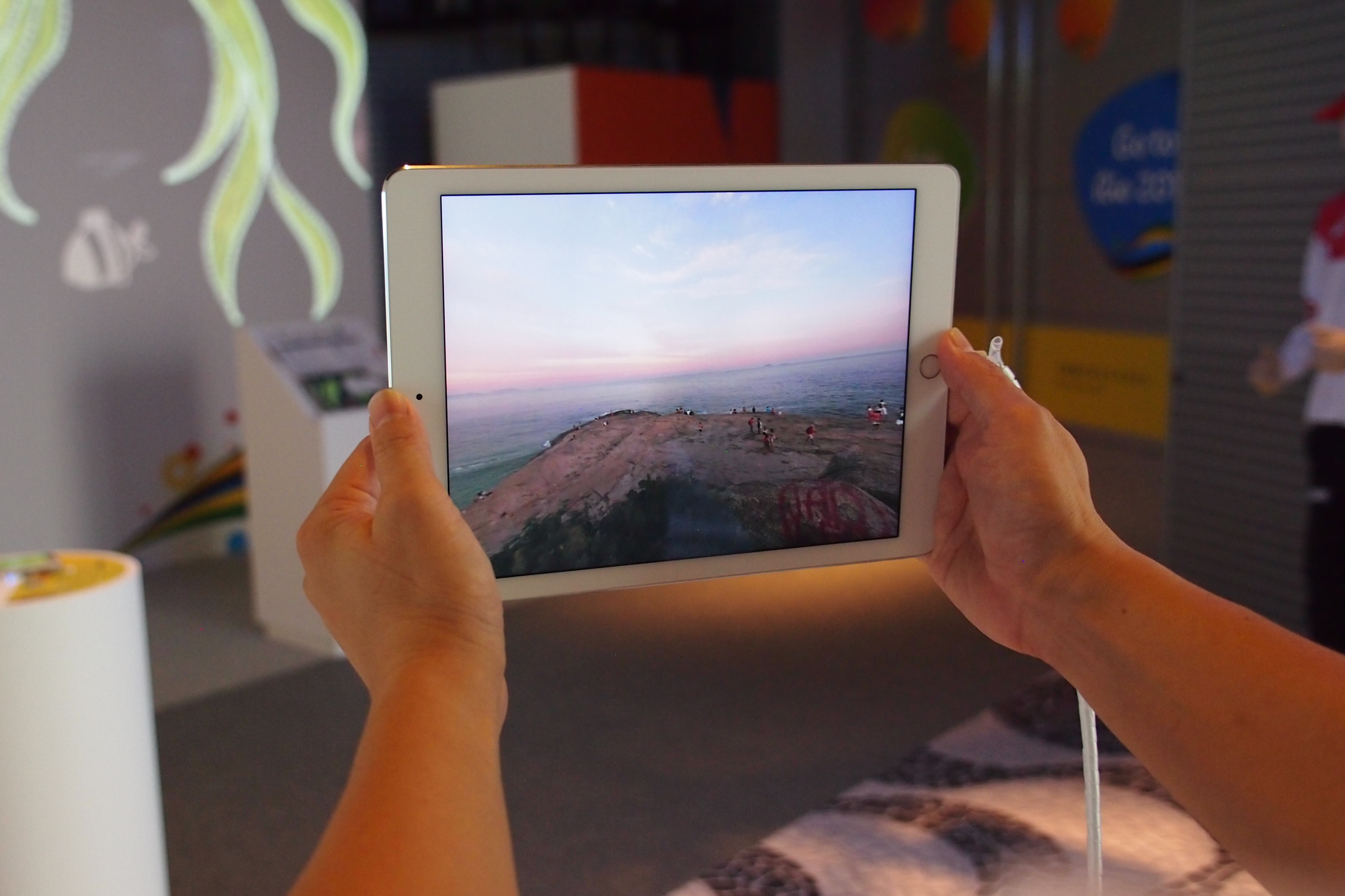 タブレットを上下左右どこに動かしても、景色を映し出してくれるので、まるで自分自身がリオの景色の中に立っているかのような感覚に