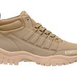 「KSLW 06 MID」は、トレンドのアウトドアデザインを、ワントーンカラーでアレンジしたストリートなシューズ。「KSLW 05 MID」同様、ミドルカット、ガゼットタン、防滑性に優れたブロックが採用されているほか、防水設計構造により、設置面から水深4センチで4時間もの防水機能を発揮します。