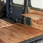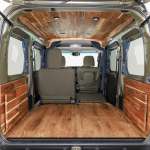 車内後方は、天井や荷台のサイドパネルに耐久性に優れた無垢の天然木アカシア材を使用しており(フロアは防水・防汚加工シート)、木の温もりを感じられる空間に。