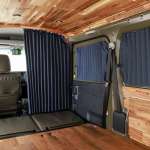 窓や荷台への仕切りに遮光カーテンが備え付けられているので、車中泊でのプライバシー確保もバッチリ。車内で快適に過ごすために、天井や荷台には車外の熱気や冷気を遮断してくれる断熱施工も施されています。