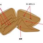 右側後方にはファスナー付きのコインポケットがあるだけでなく、さらに鍵用のポケットを2本分搭載しています。