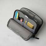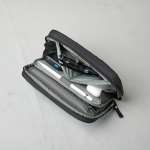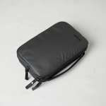 サイズは約16×24×5cmとバッグにも入れやすいコンパクトな「A.R.C. Accessory Organizer」。メイン素材には、撥水加工を施したリサイクルポリエステルを採用し、クッションパッドを内蔵。中の荷物を水や汚れ、衝撃からしっかりとプロテクトします。上部には、持ち運びやすいハンドルを搭載しています。