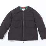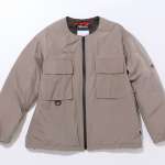 表生地には、塩縮加工と撥水加工を施したナイロン素材を採用。従来モデルのスナップボタンを止水仕様のファスナーへと変更することで、高密度で防風効果があり水の侵入もシャットアウト。アウトドアでの使用にさらに適したデザインにアップデートされています。