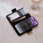 「BookBook for iPhone 14」は、財布の機能を備えた手帳型のレザーシェルとスマホを守るハードケースという2つのパーツで構成。レザーシェルとハードケースはマグネットで固定する仕組みなので、スマホとシェルを別々に使いたいときやワイヤレス充電をしたいときなどには、簡単に取り外せます。