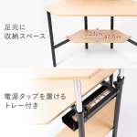 足元には書類やカバンなどを置くことができる下棚(耐荷重約8kg)付きです。また配線しやすいタップトレーが付属されているので、コードが絡まりやすい配線回りをスッキリとセットできるのもいいですね。