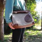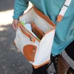 ポケットは荷室内とフロント面にファスナー付きのものを各1箇所備え、ドイツホックが配されているベルト部は、そのままハンドルになるほか、カギなどをぶら下げられるキーリングとして使うこともできます。カラーバリエーションは全4種類で、キャメル×オフホワイト、ブラウン×グレージュ、ネイビー×グレイ、グリーン×ブラック。