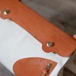 メイン素材には強度と耐久性に優れた国内製造(倉敷産)の8号帆布を採用。パーツ各所に用いられている牛革も国内加工(姫路産)のものを用いており、フルベジタブルタンニンの硬いヌメ革を時間をかけて揉みほぐし、もっちりとした手触りに仕上げられています。サイズは幅360mm×高さ280mm×マチ幅150mmで、重さは700g(ショルダー紐を含む)。