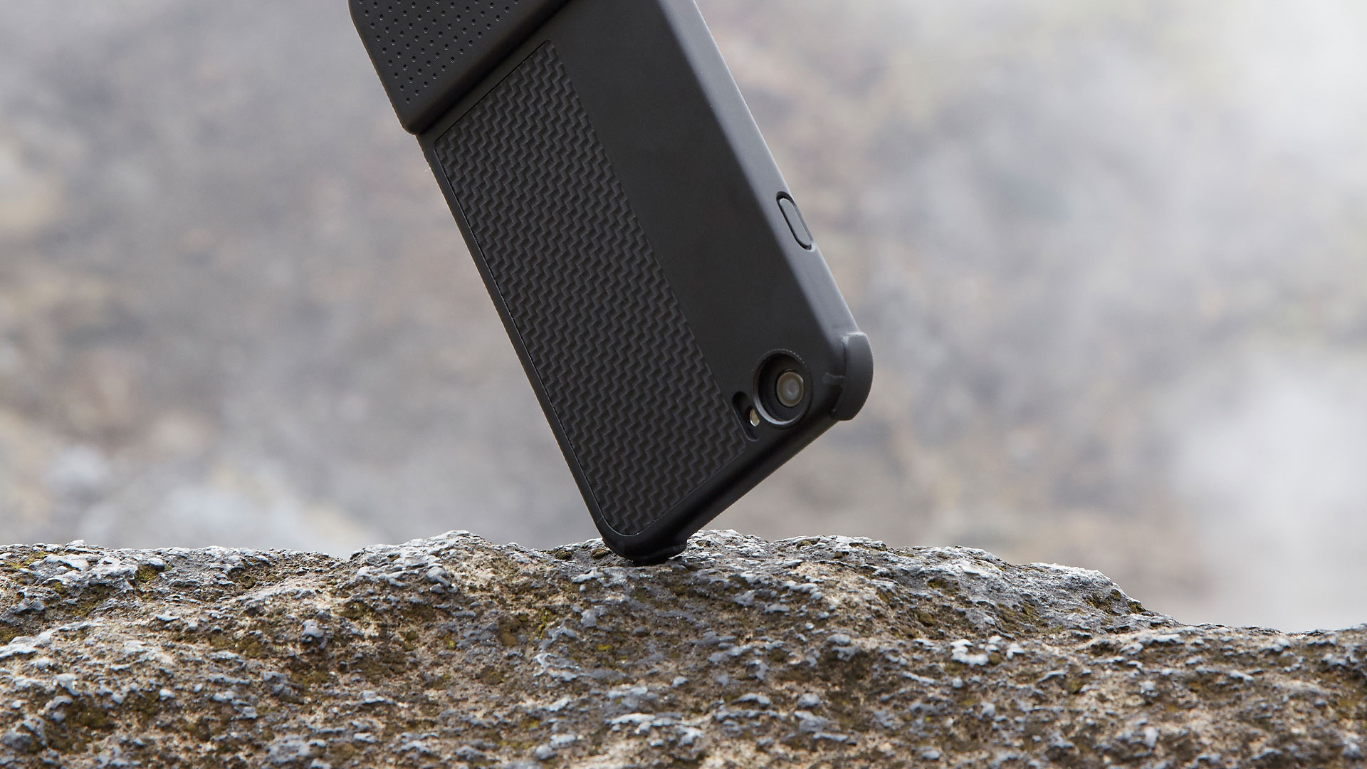 本体は二重構造のバンパー式になっており、特に角が強化されているのでiPhoneケースとしても安心。