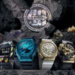 「GM-114GEM」(4万700円)は、立体的な文字盤が特徴の「GM-110」がベース。“成功に導く”といわれる鉱石・カルサイトをモチーフとしています。メインのブラックカラーと5時側・10時側に配されたゴールドIP、凹凸のあるブラックの樹脂バンドでカルサイトの原石を表現。