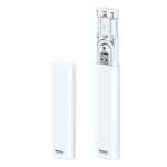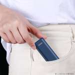 サイズは約幅30×高さ106×奥行き15mm、重さは約37g。100円ライターよりも一回り大きいくらいのケースは、カバンやポケットにスッポリ入り、気軽に持ち運べます。ケーブルが収納できるので、カバン内で絡まる心配もありません。
