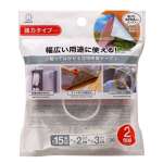 幅が約15mm、厚みは約2mmあるアクリルゴム製の両面テープ。粘着力や伸縮性が強いのが特徴です。例えば約115×15mmのサイズで使った場合、耐荷重は約400gとなるので、ちょっとした小物も壁に貼り付けられます。