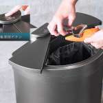ゴミ箱本体内側にはゴミ袋リングがあり、ゴミ袋を簡単に隠せるのも大きなメリット。いくら見た目が良いゴミ箱でも、ゴミ袋がチラッと見えているだけでも生活感が出て残念ですが、本製品は完全に隠せます。またゴミ袋の交換作業も簡単。カラーバリエーションはオフホワイト、シルバーグレー、マットブラックの全3色展開です。